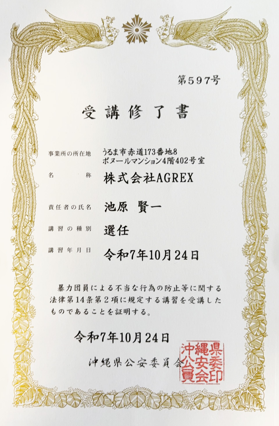 | 許可 | 沖縄県知事許可(般-3)第14547号 |